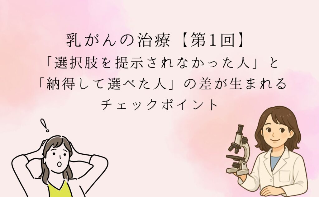 こんにちは。よりか先生です。 今回は、乳がん治療で「選択肢を提示されなかった人」と「納得して選べた人」の差が生まれるチェックポイントを解説します。 「知って選ぶ」ことの重要性を知り、後悔しないためにもぜひお読みください。 チェックポイント①...